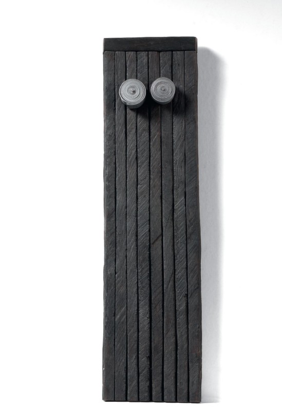 Nunzio L'Aquila 1954 Composizione, 1989 Scultura in legno bruciato e metallo, cm. 60x16x5,5 Firma e data sul retro: Nunzio / 1989. Esposizioni: Grandi maestri, piccole sculture, da Depero a Beverly Pepper, a cura di Lara Vinca Masini, Pistoia, Palazzo Sozzifanti, 6 aprile - 30 giugno 2013, cat. pp. 380-381, illustrata a colori.