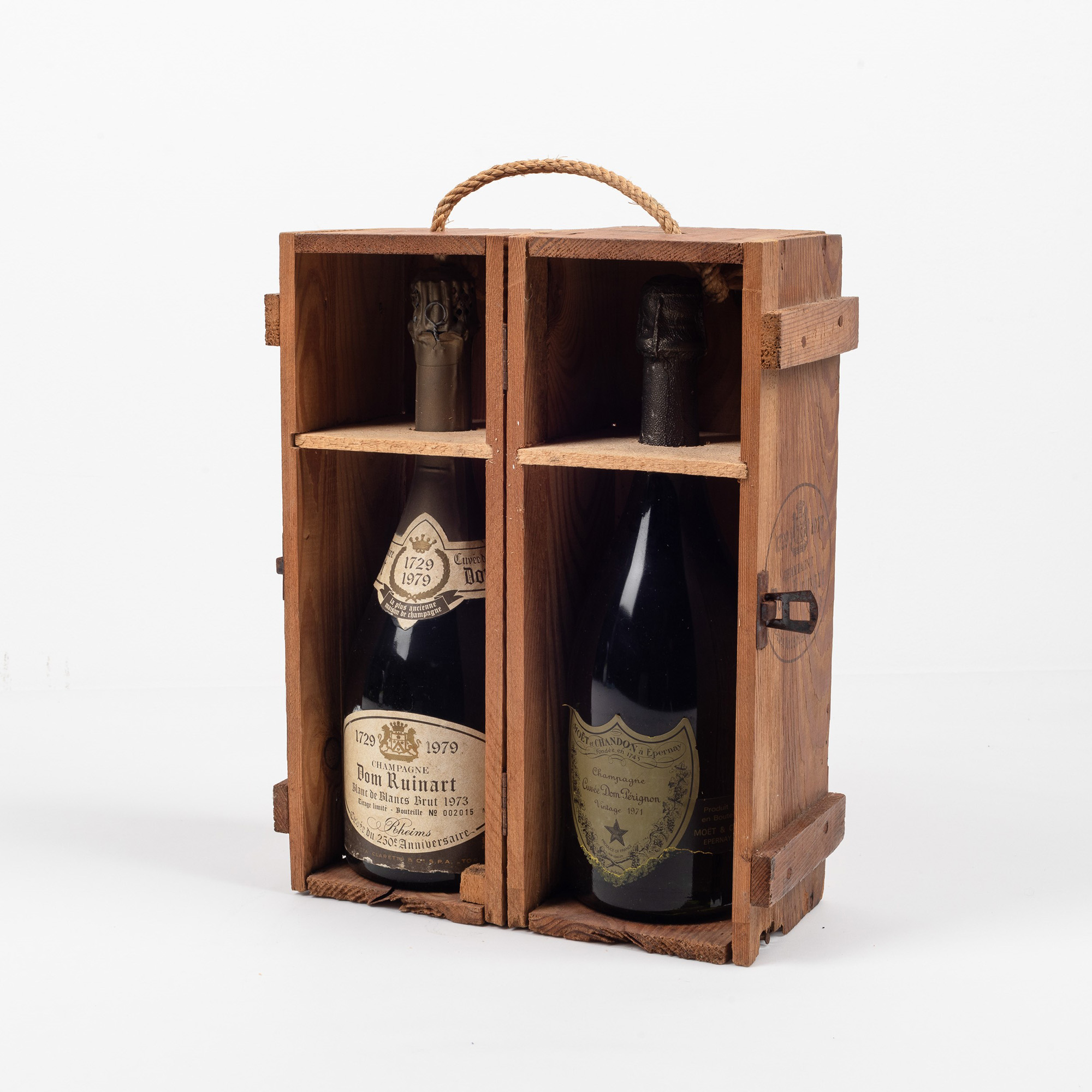 (2 Bts), Dom Ruinart, 1979, 1 Bt S, Dom Perignon, 1971, 1 Bt TS, OWC, etichette, capsule e scatola danneggiate