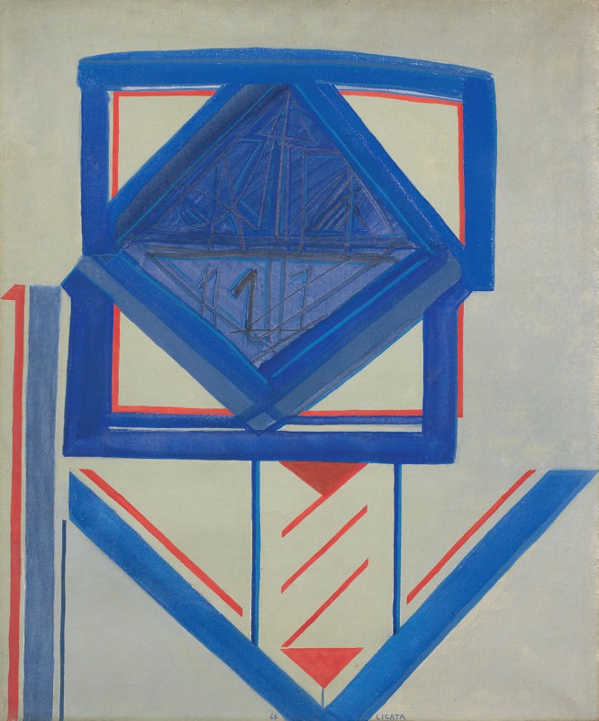 Riccardo Licata Torino 1929 Composizione, 1968 Olio su tela, cm. 65x54 Data e firma in basso al centro: 68 / Licata. Al verso sul telaio: etichetta con dati dell'opera. Foto autenticata dall'artista; foto dell'artista con l'opera.