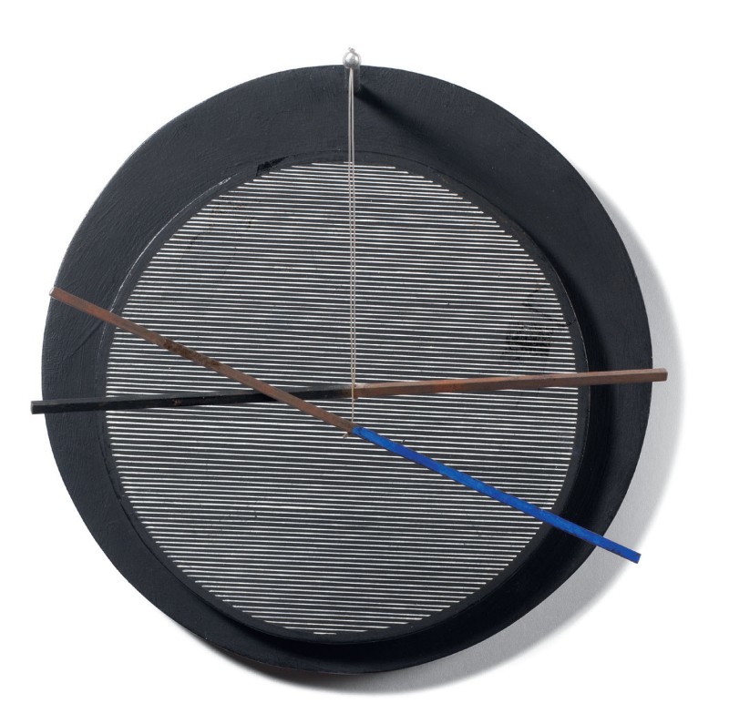 Jesus Raphael Soto Ciudad Bolivar 1923 Dialogue en Rond, 1965 Legno dipinto, filo di nylon e metallo, cm. 25 ø Firma, data e titolo al verso: Soto / 1965 / Dialogue en Rond: etichetta Henk Peeters, Arnheim. Storia: Galleria Henk Peeters, Arnheim; Collezione privata Esposizioni: Zero et Paris, Esslingen, Villa Merkel, 1997, cat. p. 87, illustrato; Grandi maestri, piccole sculture, da Depero a Beverly Pepper, a cura di Lara Vinca Masini, Pistoia, Palazzo Sozzifanti, 6 aprile - 30 giugno 2013, cat. pp. 194-95, illustrato a colori.
