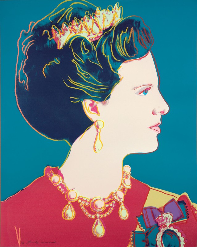 Andy Warhol Pittsburgh 1928 - New York 1987 Queen Margrethe II of Denmark, 1985 Screenprint su cartoncino Lenox, es. 9/40, cm. 100x80 Tiratura e firma a matita in basso a sinistra: 9/40 Andy Warhol. Al verso sulla cornice: etichetta Martin Lawrence Limited Editions, con n. WAR0343NU0009. Certificato Martin Lawrence Limited Editions, 27 maggio 1992. Dalla serie Reigning Queens, tiratura di 40 esemplari, 10 AP, 5 PP, 3 HC, 30 TP. Stampatore Rupert Jasen Smith, New York, editore George C.P. Mulder, Amsterdam. Bibliografia: Frayda Feldman, Jörg Schellmann, Claudia Defendi, Andy Warhol Prints. A catalogue raisonné 1962-1987. Fourth edition revised and expanded, Feldman & Schellmann, New York, 2003, pp. 142, 144, n. II.343.