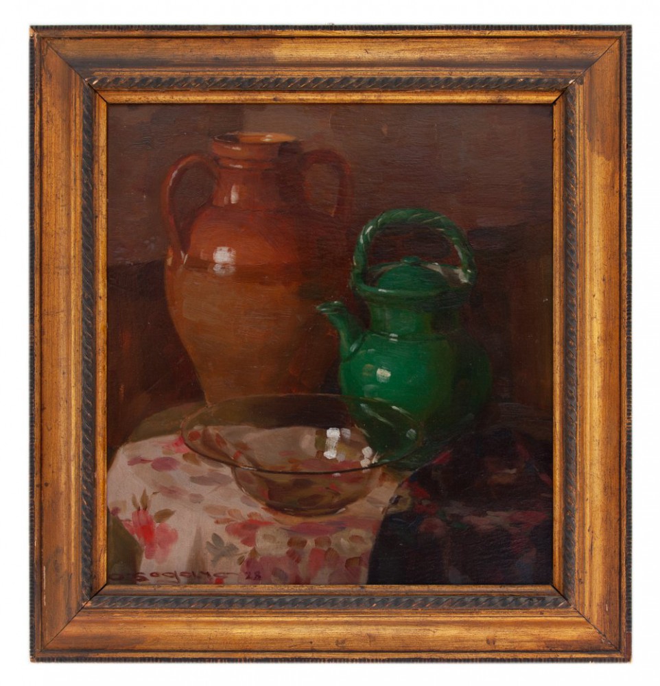 Oscar Sogaro Dolo 1888 - Venezia 1967 Vasi Olio su cartone cm 51x47,5