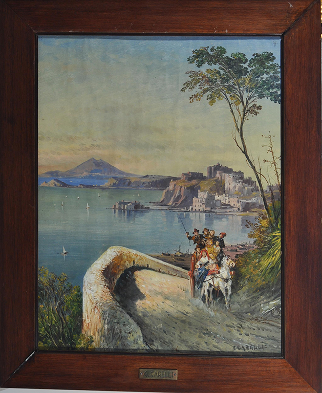 Carelli Gonsalvo (Napoli 1818 - 1900) Pozzuoli olio su carta, cm 44x34 firmato in basso a destra: C. Carelli