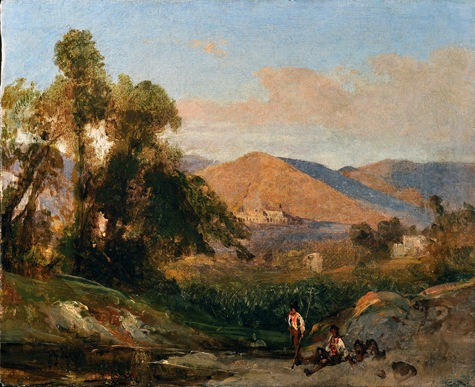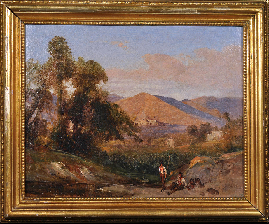 Gigante Giacinto (Napoli 1806 - 1876) Cava de' Tirreni olio su tela, cm 30,5x37 a tergo cartiglio Mostra della Scuola di Posillipo ,Napoli Esposizioni: Mostra della Scuola di Posillipo ,Museo civico Filangieri Napoli sett. - dic. 1945