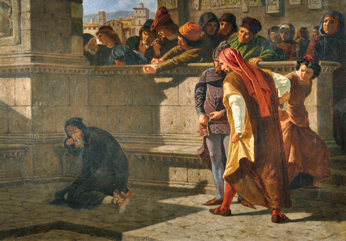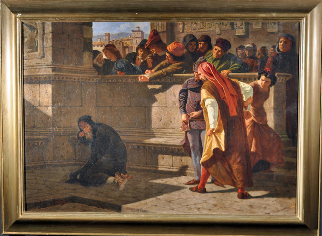Tancredi Raffaello (Resina, NA 1837 - dopo il 1916) Episodio delle cronache fiorentine del XV secolo olio su tela cm 56x80 firmato in basso a sinistra: Tancredi