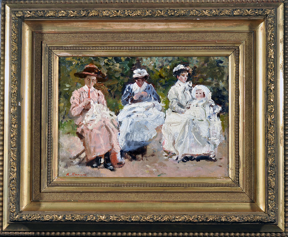 Ragione Raffaele (Napoli 1851 - 1925) Balie al Parc Monceau olio su tela, cm 22,5x29 firmato in basso a sinistra: R. Ragione