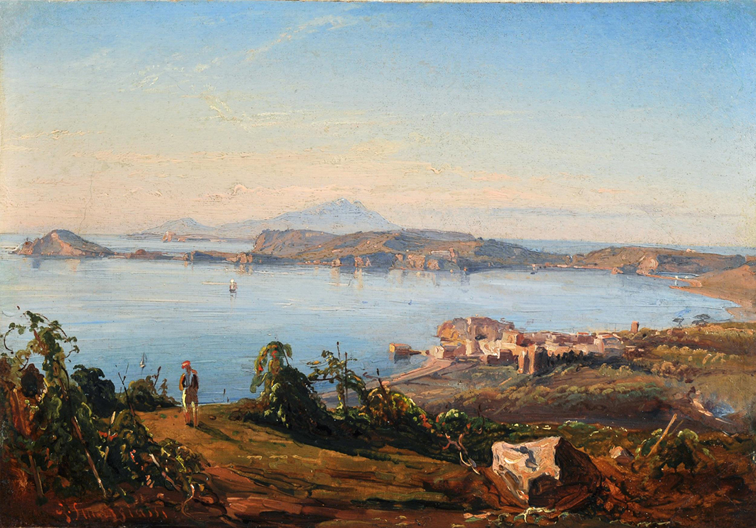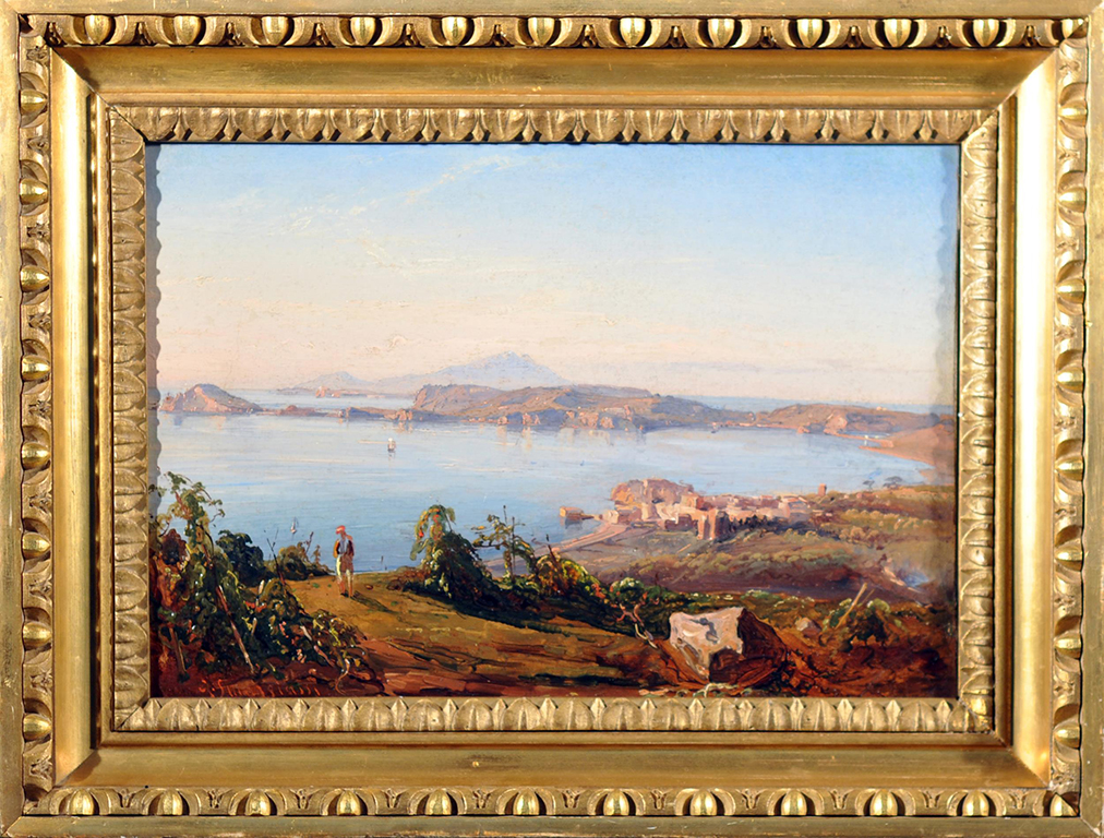 Smargiassi Gabriele (Vasto, CH 1798 - Napoli 1882) Pozzuoli olio su carta rip. su tela, cm 26x37,5 firmato in basso a sinistra: G. Smargiassi