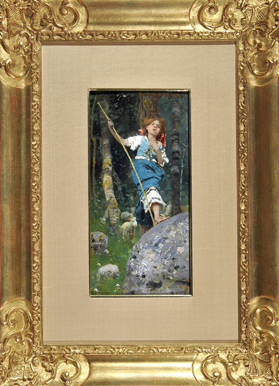 Michetti Francesco Paolo (Tocco di Casauria 1851 - Francavilla 1929) Contadina olio su tavola, cm 27,5x14 firmato in alto a destra: F. Michetti