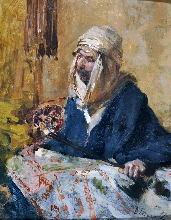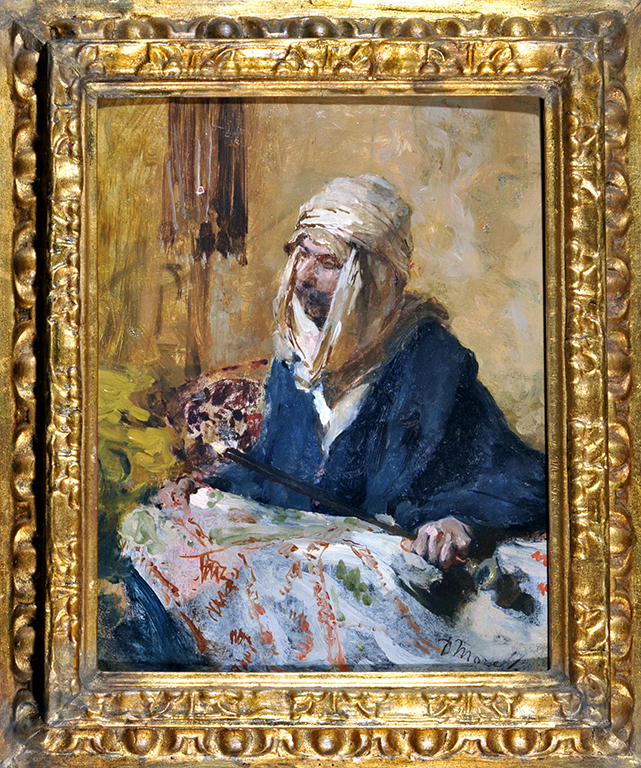 Morelli Domenico (Napoli 1823 - 1901) Figura di arabo olio su tavola, cm 29,6x23,5 firmato in basso a destra: D. Morelli Provenienza: Coll. privata, Bologna