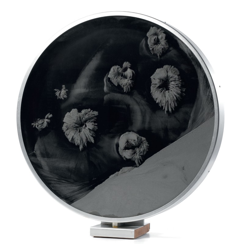 Davide Boriani Milano 1936 Superficie magnetica, 1960-1962 Limatura di ferro, magneti e animazione elettromeccanica, cm. 54x51x15,5 Firma al verso entro etichetta con dati dell'opera: Davide Boriani. Storia: Galleria Fumagalli, Bergamo; Collezione privata Foto autenticata dall'artista, con n. 50/30. Esposizioni: Le stanze dell'arte. Una ricognizione sul sentimento dei luoghi dell'abitare, Sanguinetto, Palazzo Taidelli, 13 ottobre - 11 novembre 2012, cat. p. 49, fig. 35, illustrata.