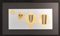elementi di ottone su lastra di acciaio riportato su tavola entro teca
