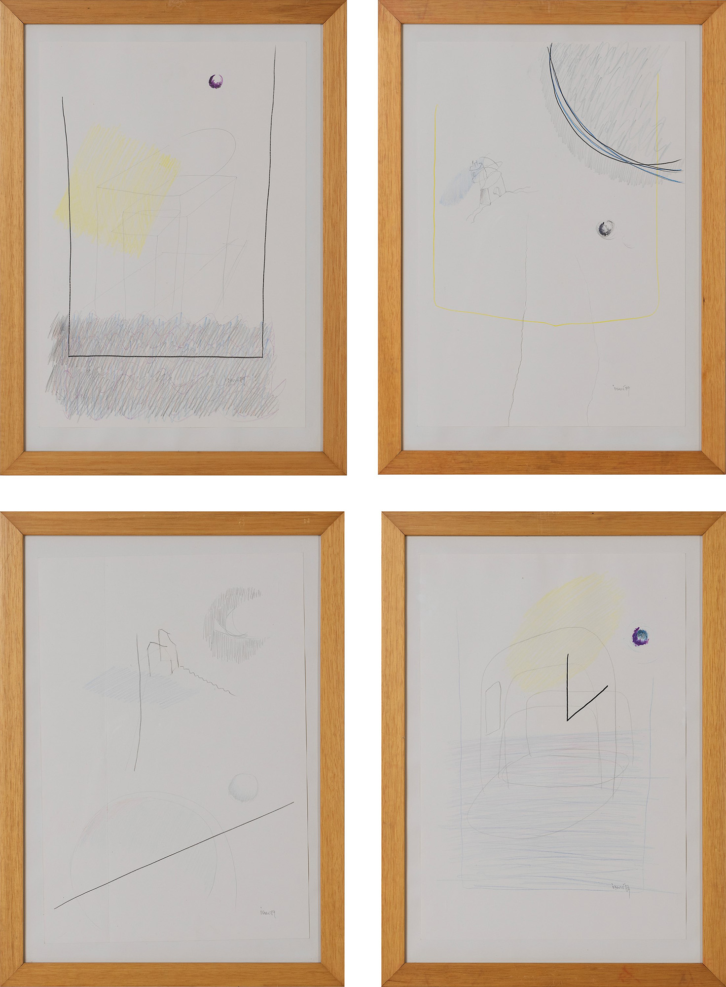 lotto di 4 tecniche miste su carta