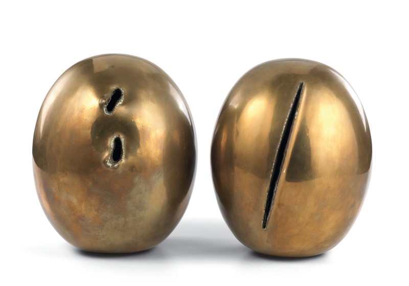 Lucio Fontana Rosario Santa Fè 1899 - Varese 1968 Concetto Spaziale, Natura, 1967 Due sculture in ottone lucidato, es. 111/500, cm. 27 h., ognuna Firma su un lato: Fontana, l'una, L. Fontana, l'altra; tiratura sotto la base di entrambe: 111/500. Storia: Galleria Fallani, Firenze; Collezione privata Esposizioni: Grandi maestri, piccole sculture, da Depero a Beverly Pepper, a cura di Lara Vinca Masini, Pistoia, Palazzo Sozzifanti, 6 aprile - 30 giugno 2013, cat. p. 102, illustrate a colori. Tiratura di 5 prove d'artista numerate da I a V, e 500 copie numerate da 1/500 a 500/500, tutte in ottone lucidato fuse ad iniezione.