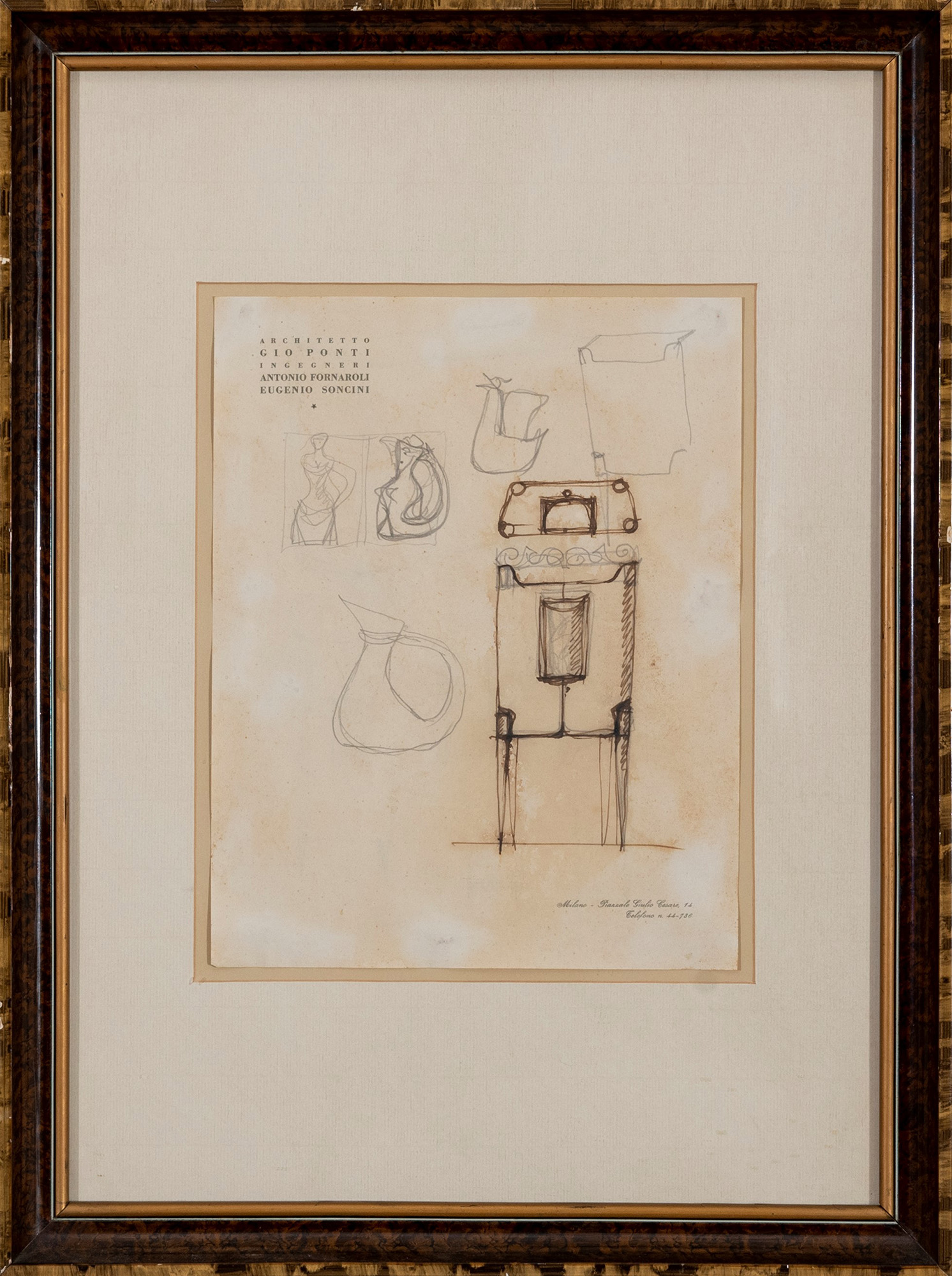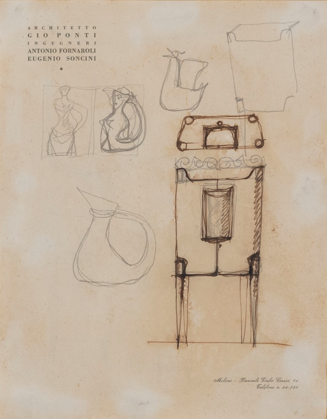 tecnica mista su carta intestata "Architetto Gio Ponti Ingegneri Antonio Fornaroli Eugenio Soncini" dello studio