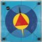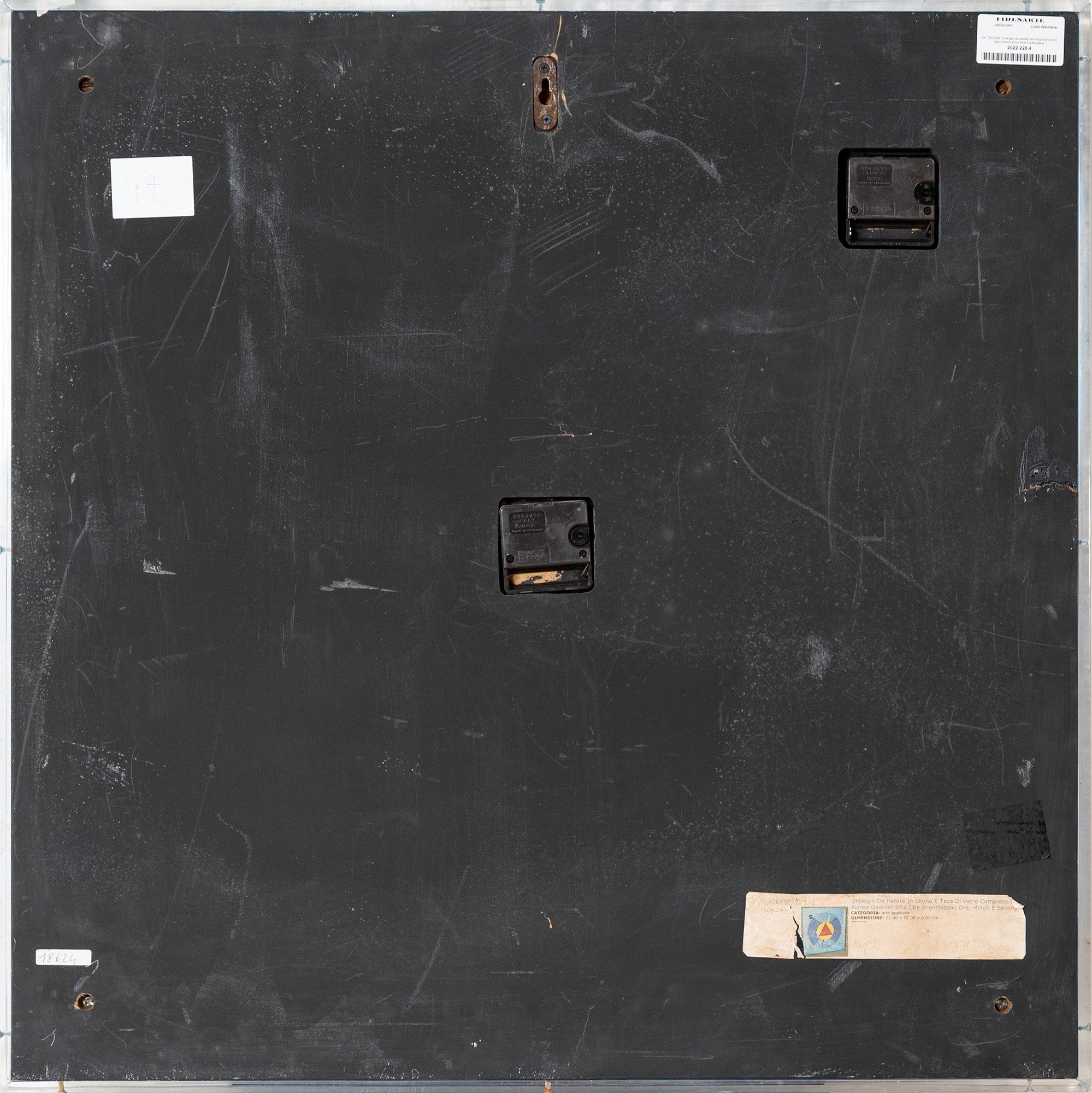 (orologio da parete) sovrapposizione di legni dipinti entro teca in plexiglass