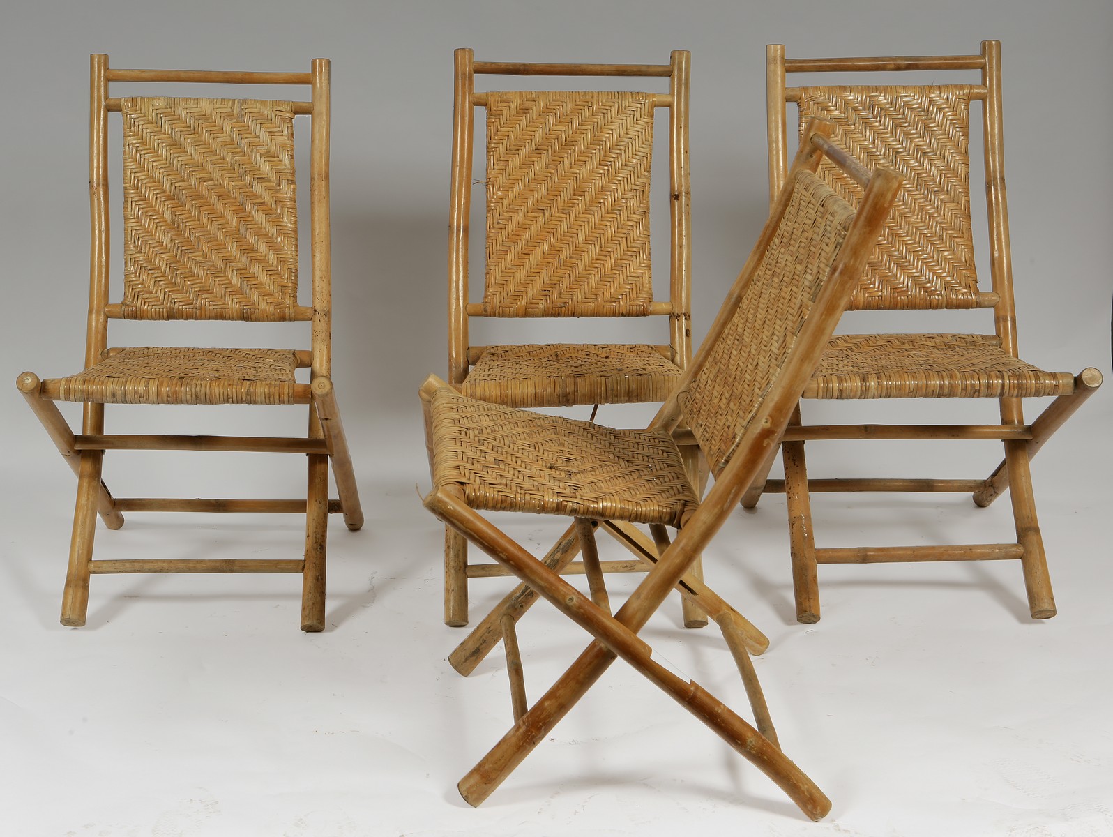 PRODUZIONE ITALIANA - ITALIAN WORK. Sedie in bambu' e midollino. Bamboo and wicker Chairs. Bambù. Cm 52x92x66. Anni 70.