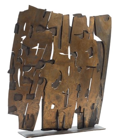 Pietro Consagra Mazara del Vallo (Tp) 1920 - Milano 2005 Colloquio mitico, 1959 Scultura in bronzo, es. 1/2, cm. 87 h. Firma, data e tiratura a punzone sulla base: Consagra 59 / 1/2. Esposizioni: Consagra, sculture, Palermo, Palazzo dei Normanni, 24 febbraio - 24 aprile 1973, cat. n. 30, illustrata. Bibliografia: Thomas M. Messer, La Collezione Peggy Guggenheim, testo di Lucy Flint, The Solomon R. Guggenheim Foundation, 1983, pp. 204, 205 (illustrato esemplare 2/2).
