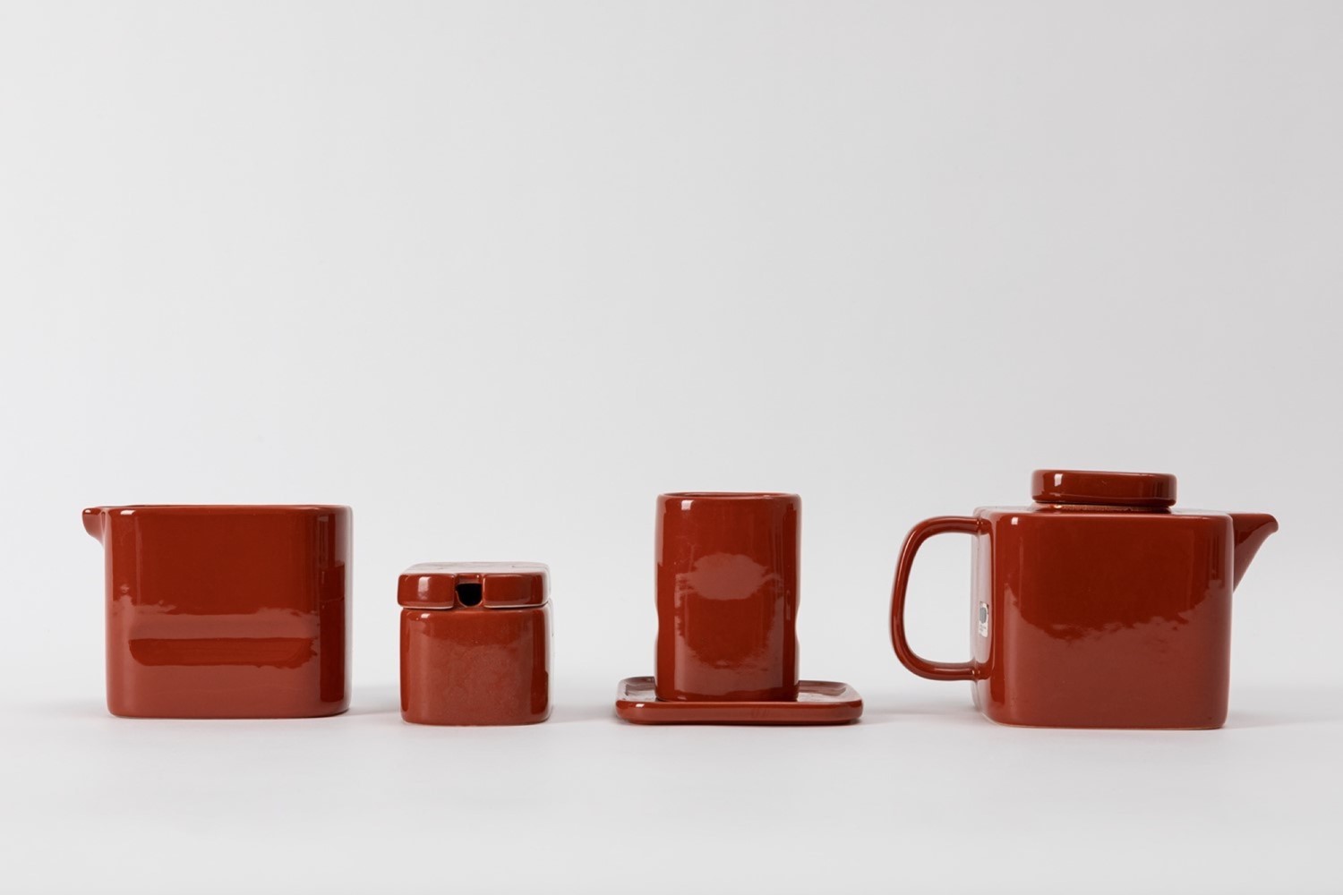 in ceramica smaltata composto da teiera, lattiera, zuccheriera, 6 tazze e 6 piattini.