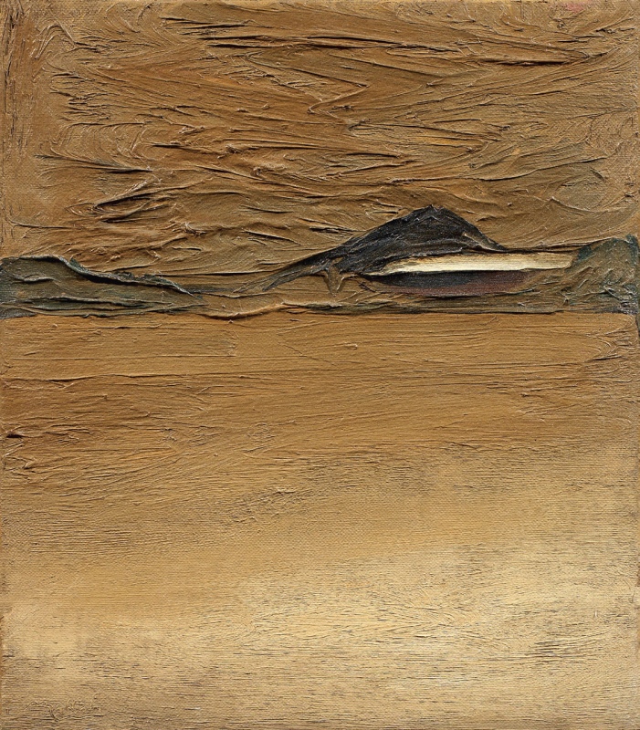 Firma in basso a sinistra: Mattioli; firma, data e titolo al verso sulla tela: Mattioli / 1974 / Spiaggia d'estate; sul telaio: timbro Galleria d'Arte Guerrieri: timbro Galleria d'Arte 32, Milano.