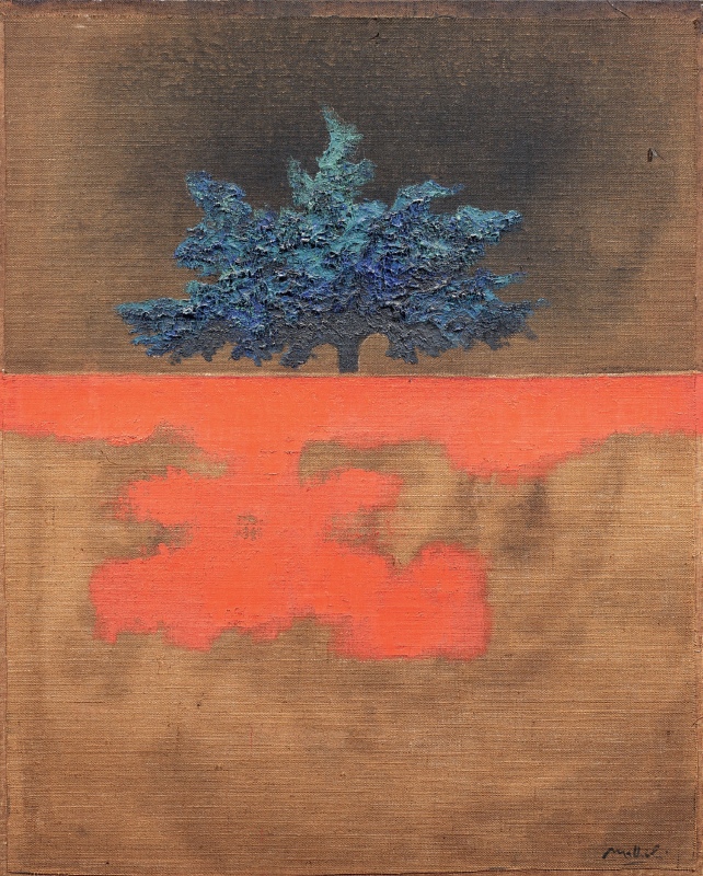 Firma in basso a destra: Mattioli; al verso sulla tela firma, data e titolo: Mattioli / 1987 / Paesaggio.