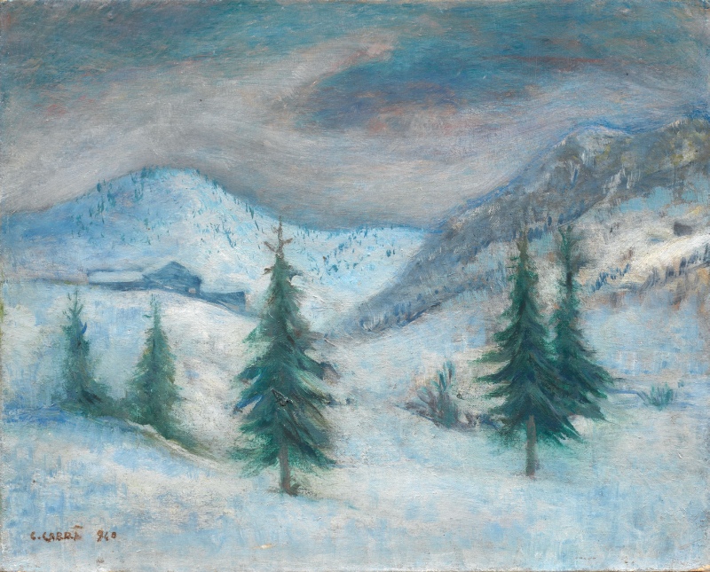 Carlo Carrà Quargnento (Al) 1881 - Milano 1966 Nevicata, 1940 Olio su cartone...