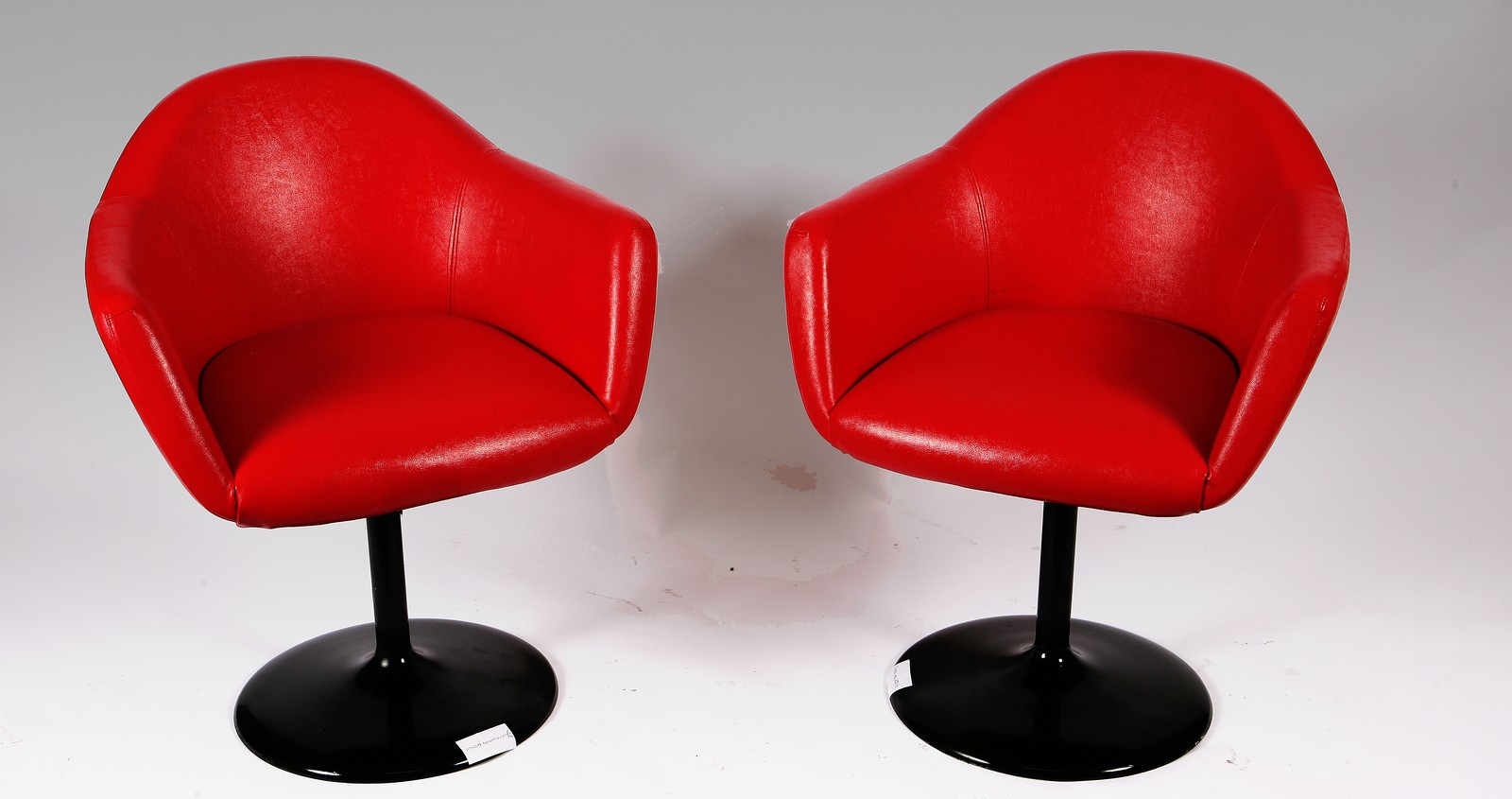 ANONIMO. Coppia di poltrone imbottite. Base in metallo laccato. Pair of...