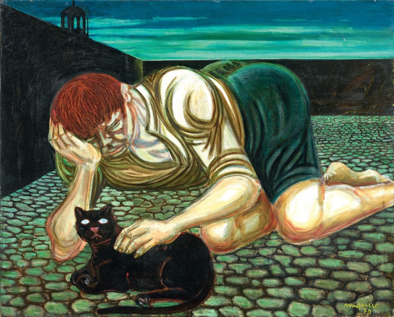 Giuseppe Migneco Messina 1908 - Milano 1997 Ragazzo con gatto, 1970 Olio su...