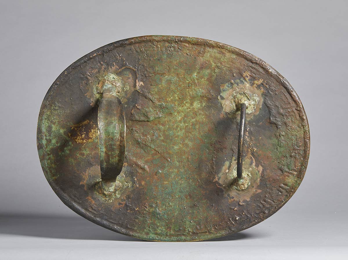 Il manufatto è piuttosto pesante e molto materico, specialmente nella parte posteriore dove notiamo la superficie grezza a cui sono saldate le fasce con del piombo fuso.