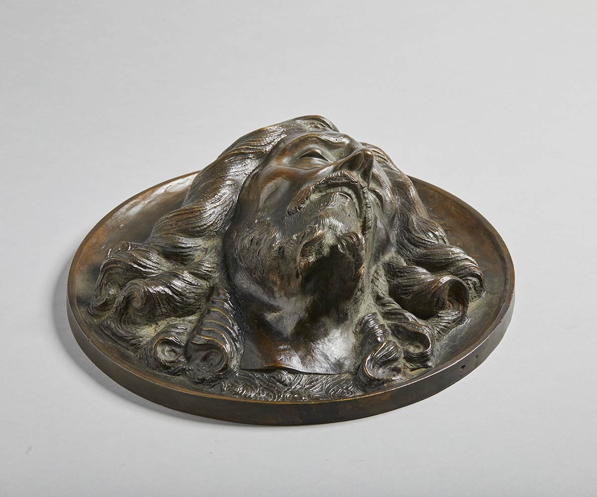 Altorilievo raffigurante la testa mozza del Battista poggiante sopra ad un vassoio rotondo.