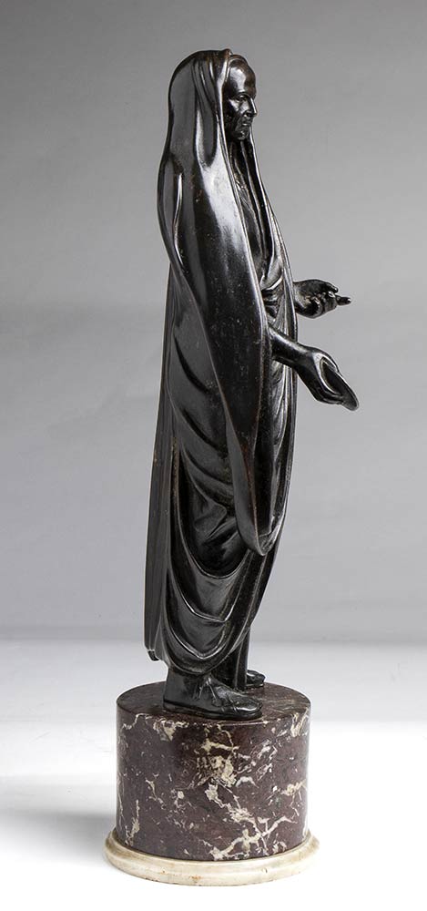 Bronzo patinato nero. 40 x 12 x 9,5 cm con base in marmo; 31 x 12 x 9,5 cm senza base