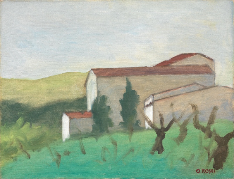 Ottone Rosai Firenze 1895 - Ivrea (To) 1957 Paesaggio con case, 1954 ca. Olio...