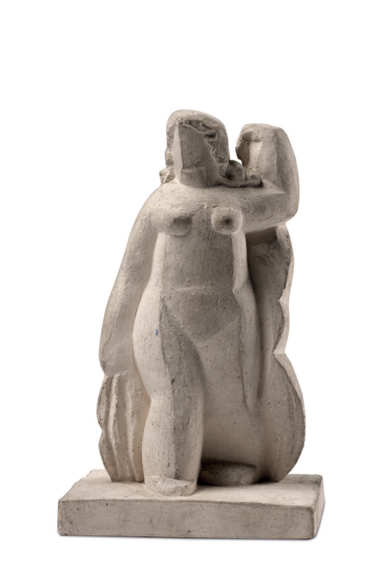 Henri Laurens Parigi 1885 - 1954 Figure à la draperie, debout, 1929 Scultura in terracotta, es. 2/6, cm. 19 h. Sigla e tiratura sulla base: HL 2/6. Sotto la base: etichetta Galerie Louise Leiris / Paris, con n. 06584. Storia: Galerie Louise Leiris, Parigi; Svenske Franska Konstgalleriet, Stoccolma; Collezione privata Esposizioni: Grandi maestri, piccole sculture, da Depero a Beverly Pepper, a cura di Lara Vinca Masini, Pistoia, Palazzo Sozzifanti, 6 aprile - 30 giugno 2013, cat. pp. 54, 55, illustrata a colori (con misure errate). Eseguita in gesso nel 1929 e realizzata in terracotta nello stesso anno. Tiratura di sette esemplari numerati da 0/6 a 6/6. Laurens realizzò un'altra versione di quest'opera in alabastro, su più larga scala. Bibliografia: Werner Hoffmann, The Sculpture of Henri Laurens, New York, 1970, tav. 113 (illustrata versione in alabastro).