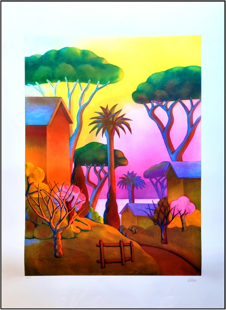 SALVO (SALVATORE MANGIONE) Leonforte (EN) 1947 - Torino 2015 "Paesaggio tropicale" Acquatinta cm 110x152. Firmata sul fronte in basso a destra, tiratura a sinistra.