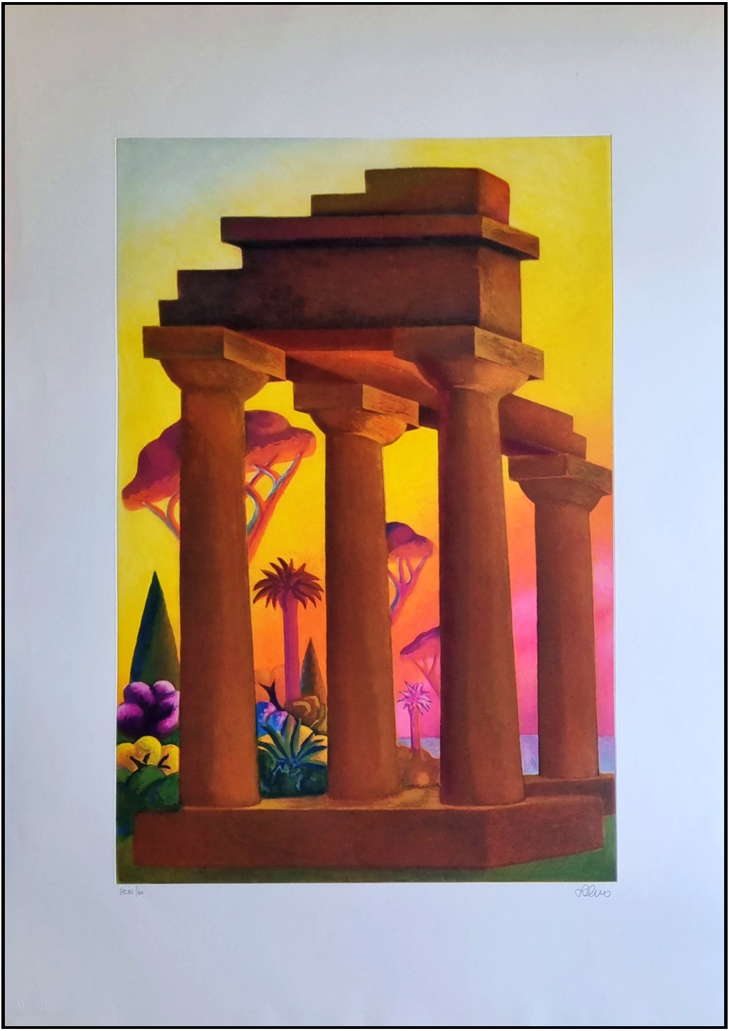 SALVO (SALVATORE MANGIONE) Leonforte (EN) 1947 - Torino 2015 "Paesaggio con colonne" Acquatinta cm 123x87. Firmata sul fronte in basso a destra, tiratura a sinistra.