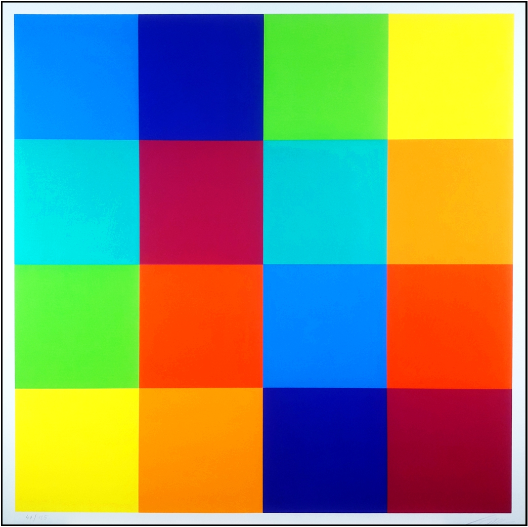 LOHSE RICHARD PAUL Zurigo 1902 - 1988 "Senza titolo" Serigrafia su cartone Fabriano cm 68x68. Firmata a matita sul fronte in basso a destra, tiratura 46/125 a sinistra. Facente parte della cartella "Exacta - dal Costruttivismo all'arte sistematica 1918-1985".