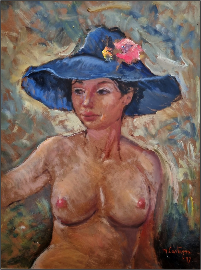 CASTAGNA XX sec. "Senza titolo" Olio su mdf cm 30x40 del 1997. Firmato e datato sul fronte in basso a destra. Al retro timbro della galleria "Il castello di Adria". Autentica su foto.