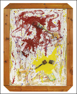 VELASCO MARCO Milano 1965 "Fine d'artista" Tecnica mista su carta povera, applicata su tela, cm 70x100 del 2002. Autentica su foto a cura dell'artista.
