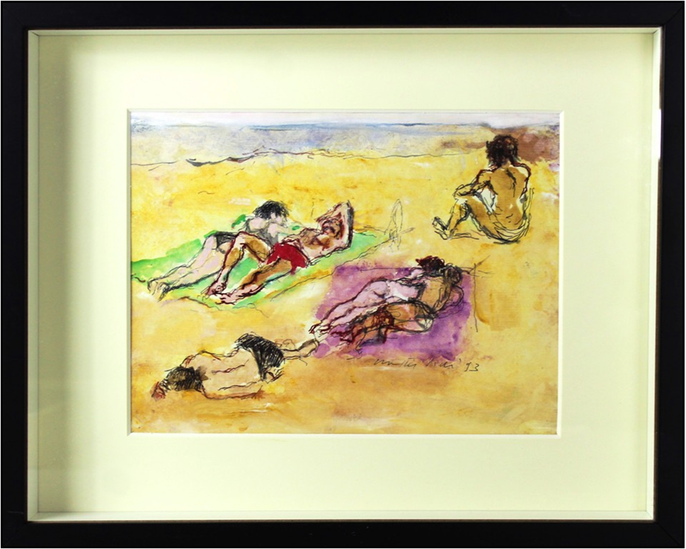 PIACESI WALTER Ascoli Piceno 1929 - Fermignano (PU) 2022 "La spiaggia" China e acquerelli cm 27,5x20,5 del 1993. Firmata e datata sul fronte in basso a destra. Autentica ed archivio dell'artista su foto.