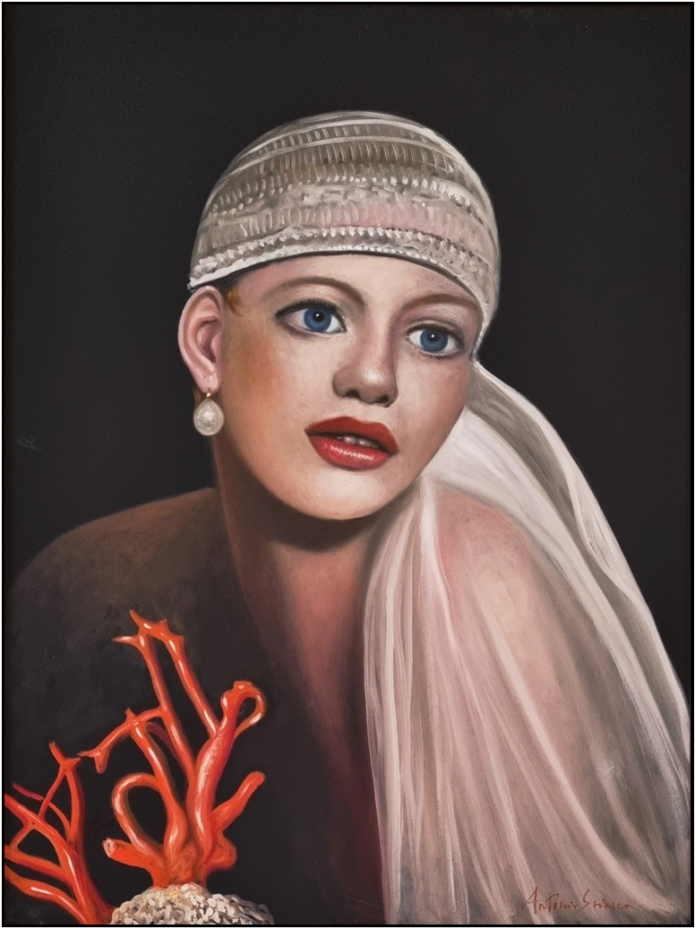 SCIACCA ANTONIO Catania 1957 "Figura femminile" Olio su tela cm 60x80. Firmato sul fronte in basso a destra. Sul retro titolo e firma. Autentica su foto a cura dell'artista e foto dell'artista ritratto con l'opera.