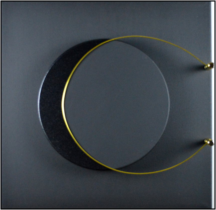 BANI BRUNO Cernusco sul Naviglio (MI) 1964 "Eclissi parziale nera" Due tele sovrapposte, con sistema a led telecomandato e filo rigido in metallo, cm 50x50 del 2018. Sul retro numero d'archivio, titolo, data e firma. Autentica su foto dell'artista e fotografie dell'artista con l'opera, mentre la firma.