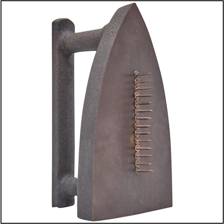 MAN RAY (EMMANUEL RADNITZKY) Filadelfia 1890 - Parigi 1976 "Cadeau" Opera multipla realizzata con ferro da stiro in ghisa e chiodi cm 9x16x10. Firma e titolo sul manico di ghisa, numerazione esemplare 4998 di 5000. Opera contenuta in teca di plexiglass.