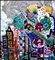 KOSTABI PAUL Whittier (CALIFORNIA) 1962 "Big city blues" Olio e tecnica mista su tela cm 68x75. Firmato sul fronte in basso a destra. Sul retro firma, titolo e misure. Certificato di garanzia e autenticità su foto a cura della Follin Gallery e a firma dell'artista, più foto dell'artista con l'opera.