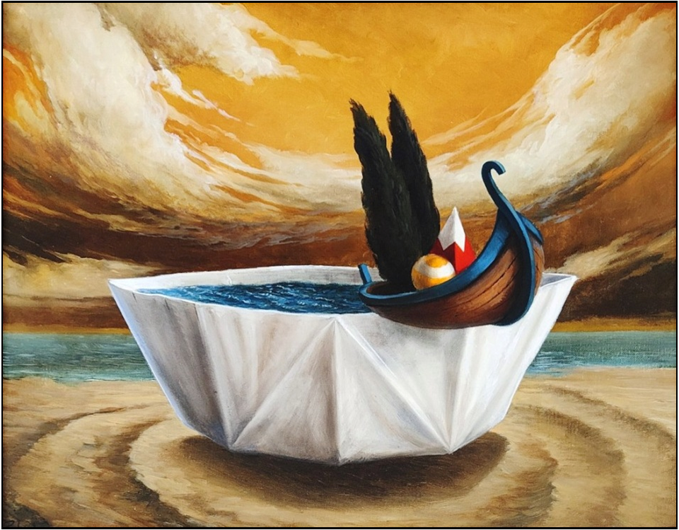 PALUMBO CIRO Zurigo (SVIZZERA) 1965 "Partenze" Olio su tela cm 50x40. Firmato sul fronte in basso a sinistra. Sul retro firma, titolo ed etichetta descrittiva con numero d'archivio. Certificato di autenticità a cura dello Studio d'arte Palumbo.