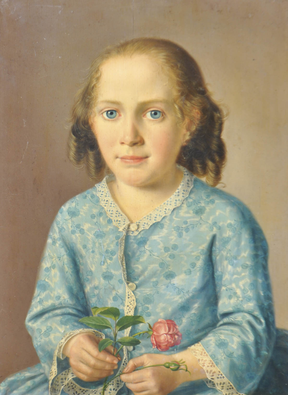 Georg Wachter (Hall in Tirol 1809 - Bozen/Bolzano 1863) Ragazza con rosa;Olio su tavola, 48 x 36 cm, in cornice
