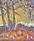 Waldemar Güttner (Hermannstadt 1879 - Innsbruck 1967) Tramonto in Tirolo (Paesaggio primaverile con crochi);Olio/tempera su cartone, 85 x 71 cm, piccole scheggiature di