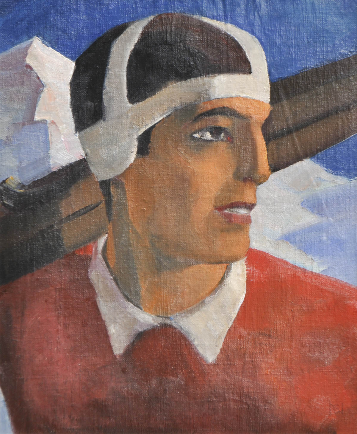 Ernst Nepo Dauba, Böhmen/Boemia 1895 - Innsbruck 1971) "Roter Teufel von Kitz", 1930 ca.;Olio su tela, 43 x 35,5 cm, rintelato, in cornice