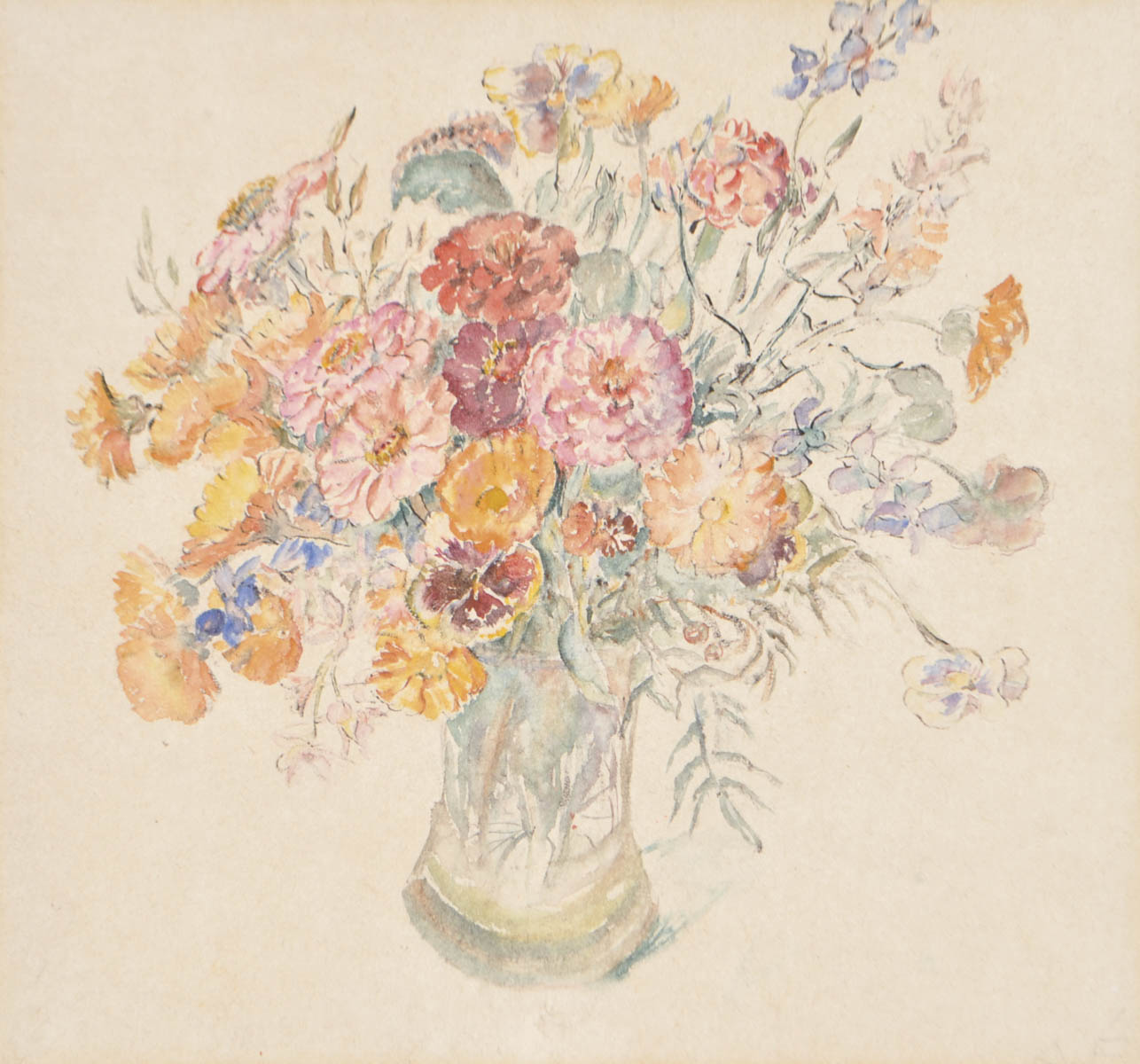 Anni Egösi (Meran/Merano 1894 - 1954) Mazzo di fiori;Acquerello, 39,5 x 42,5 cm, montato su cartone, in cornice