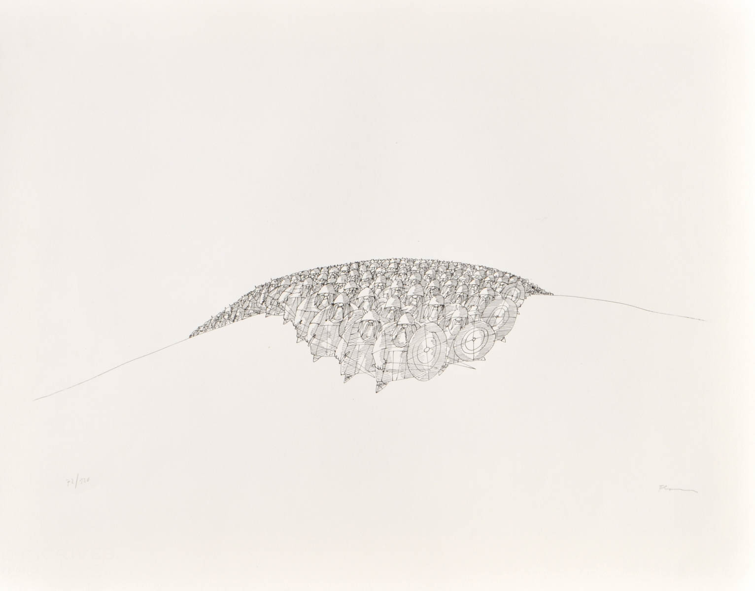 Paul Flora (Glurns/Glorenza 1922 - Innsbruck 2003) Germani;Litografia, 50,2 x 65 cm