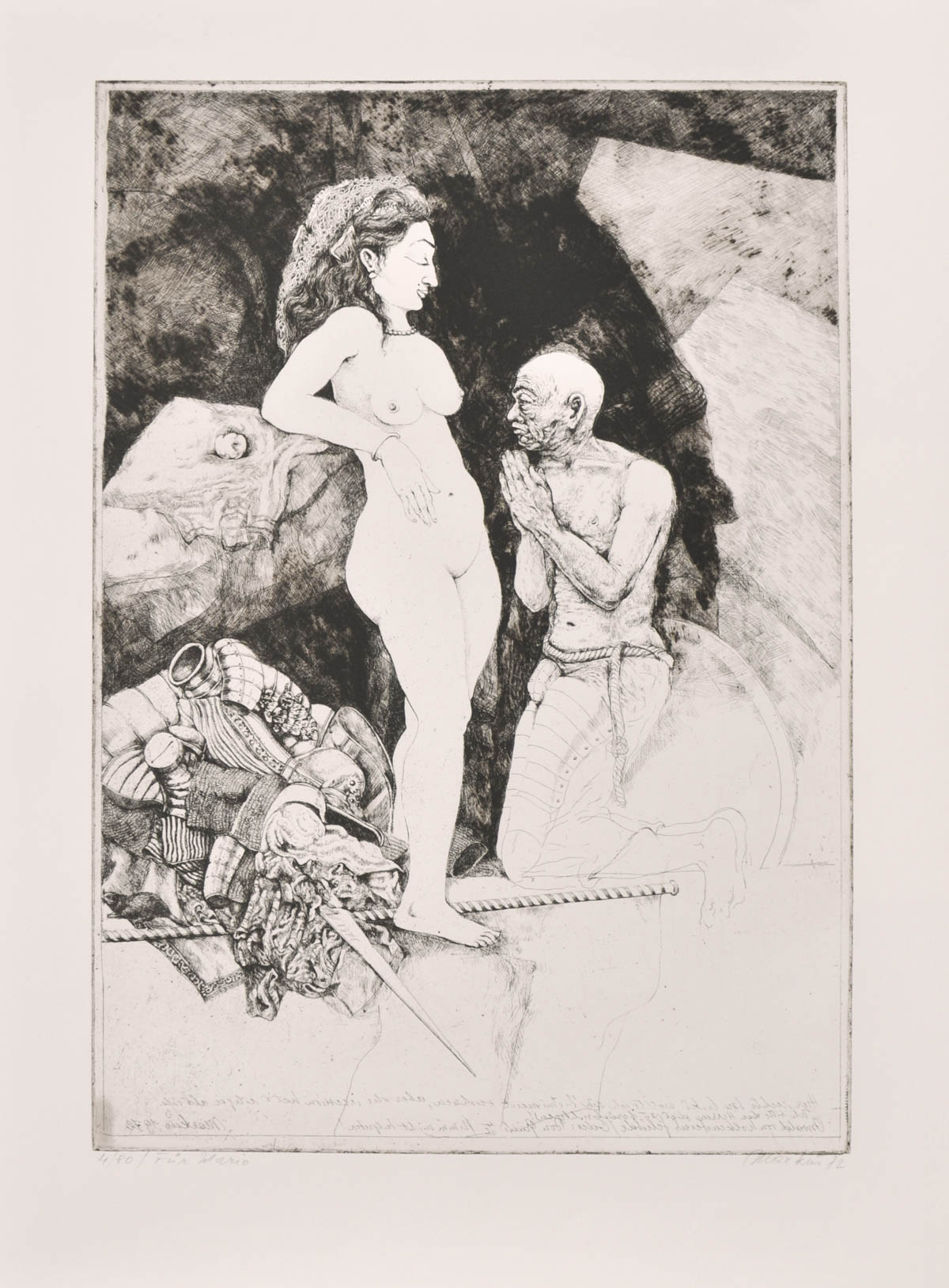 Markus Vallazza (St. Ulrich in Gröden/Ortisei 1936 - Bozen/Bolzano 2019) Il voto di Oswald von Wolkenstein, 1972;Acquaforte, 49 x 34,5 cm (lastra)