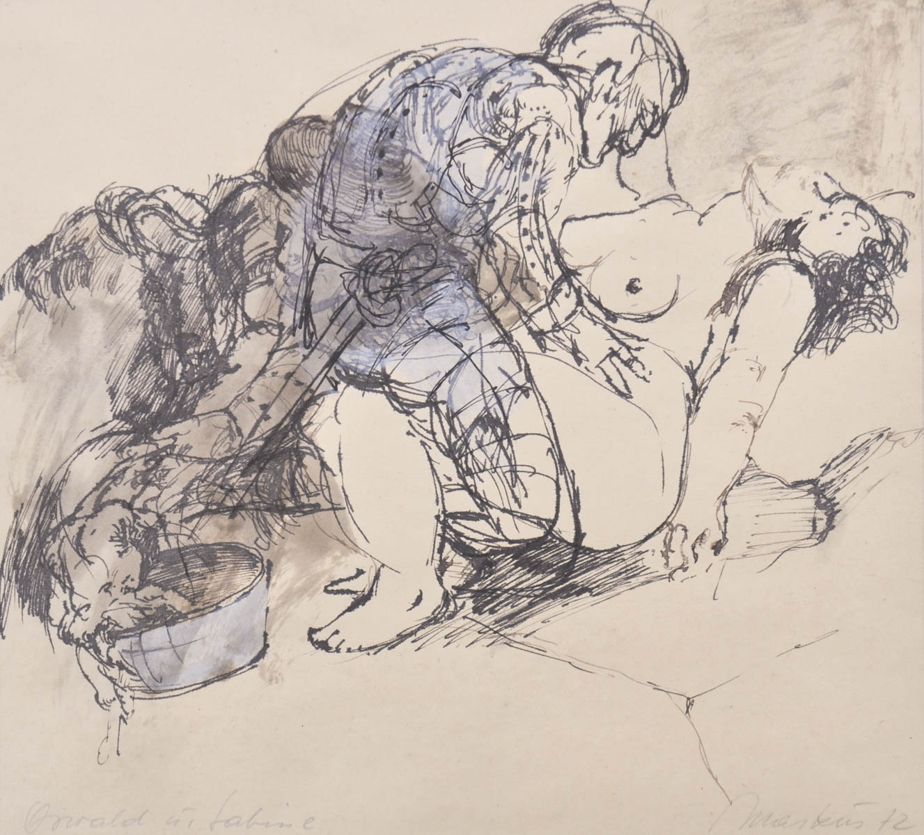 Markus Vallazza (St. Ulrich in Gröden/Ortisei 1936 - Bozen/Bolzano 2019) Oswald e Sabine, 1972;China acquerellata, 21,5 x 24 cm (entro il passepartout)